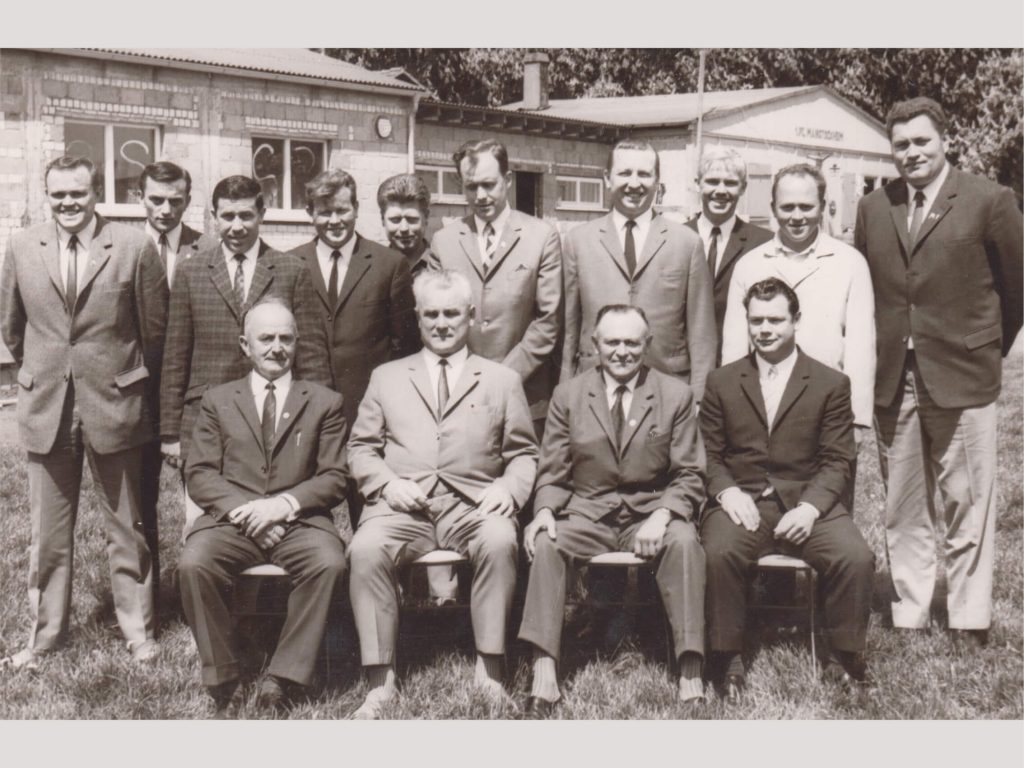 Von links: Neubert Kurt, Förster Willi, Kendura Oswald, Müller Willi, Dobler Horst, Brandner Siegfried, Hinnerkopf Georg, Müller Adolf, Neubert Heinz, Wendinger Heinz