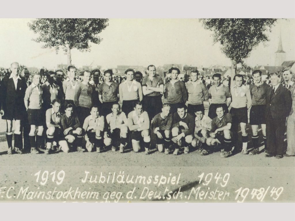 Die Gründerzeit des Mainstockheimer Fußballsports war durch die Kitzinger Realschüler stark beeinflusst, kamen doch von dort auch die ersten Impulse. Es wurde im Turnplatz, am Dreschplatz und auf den Wiesen am Main gekickt und gespielt. Endlich am 27. Mai 1919 fanden sich 30 junge Leute zur Gründungsversammlung ein. Verdiente Initiatoren waren u.a. Lößlein, Lang, Baumbach, Rösch, Sonder, Rindsberg, Neubert, Summa, Lippert, Rattinger, Gernert, Ackermann, Schardt, Schimmel, Temmel, u.a.